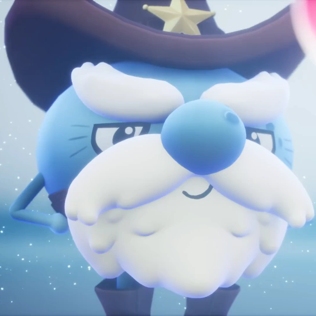 Aloysius is dark light blue and spherical having simple stick arms and spheres for hands like Auri. He has wrinkles on his right eye and spots on his left eye with puffy white eyebrows and a beard including a round nose with one spot on the left top. Aloysius also wears a brown belt, a cowboy hat with a yellow star on top representing him as the sheriff, and brown boots.