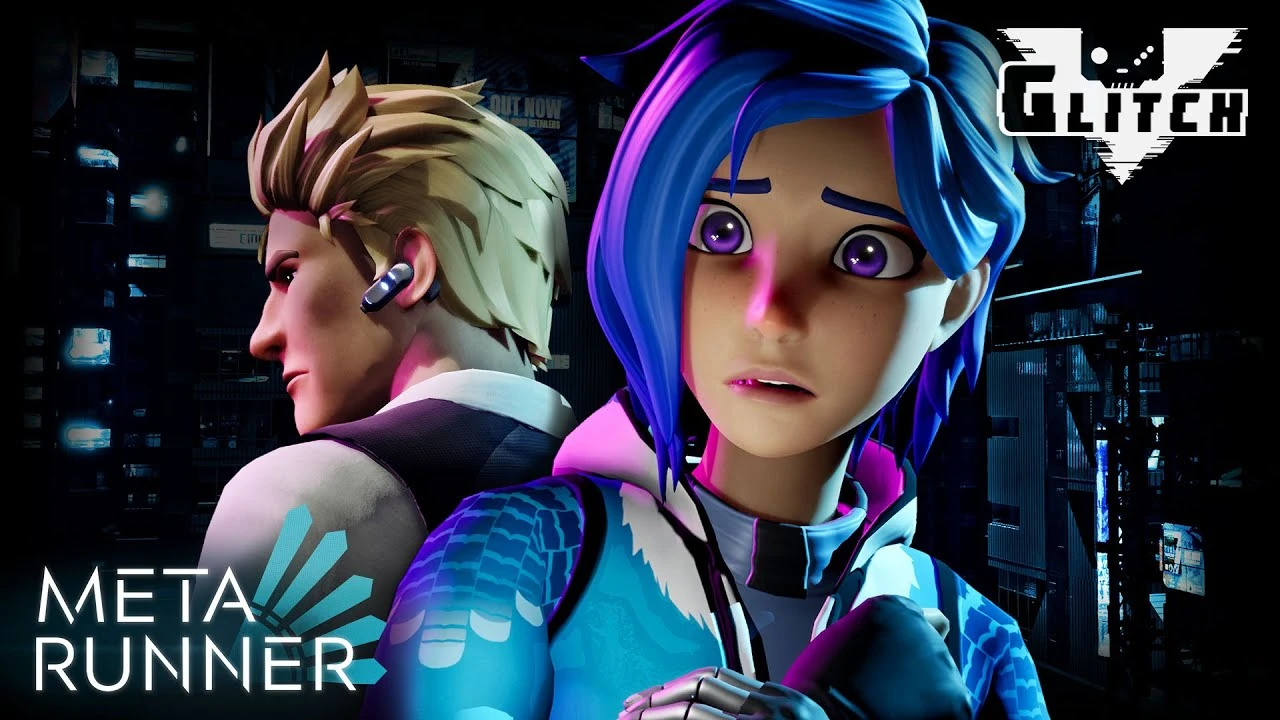 When one of the Meta Runners take up their keyboard like thing on their robotic arm, one of the symbols is the logo for Glitch Productions.