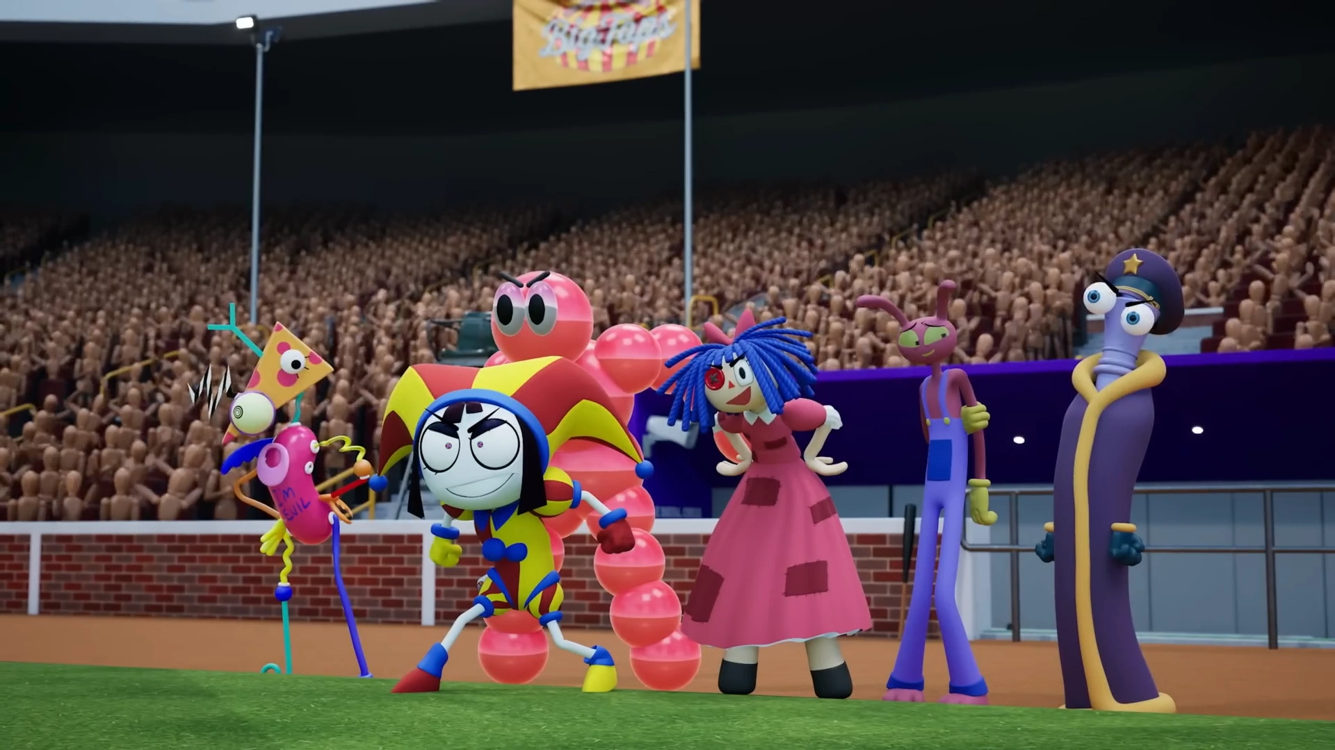Pomni and friends spend an honest day’s hard work at popular fast food chain; Spudsy’s! Keep an eye out though, Gangle is the manager and has a brand new mask… it’s like she’s a whole NEW person!