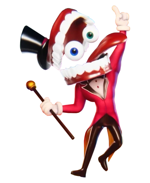 The secondary antagonist who is an AI entity created by Caine[12]. They are a sentient bubble creature that lives in his hat. They have a large, sharp-toothed face and appear to have a destructive and unhinged behavior, much to Caine's dismay/annoyance.